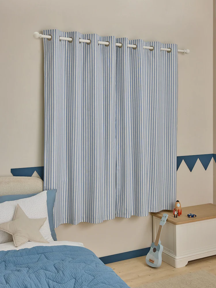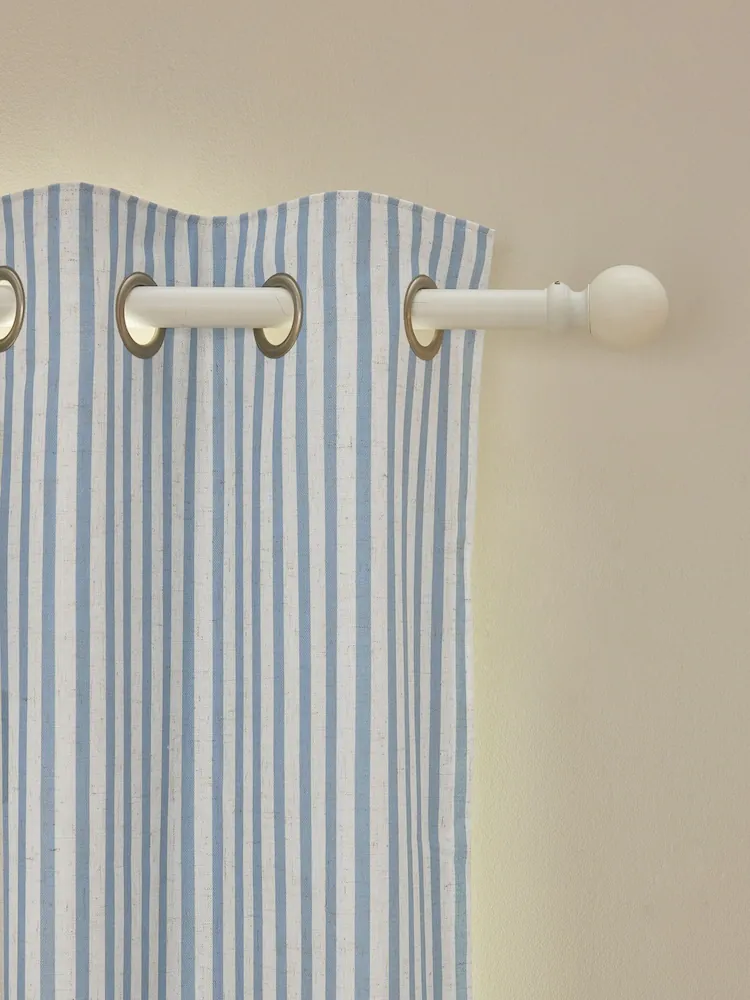 Bring a fresh coastal feel to your space with these blue stripe eyelet linen curtains designed to softly filter light while adding playful character. The breathable natural-look fabric provides comfort and privacy, making them perfect for UAE kids’ rooms, bedrooms, or casual living areas. Smooth eyelets allow easy sliding with a clean modern finish.