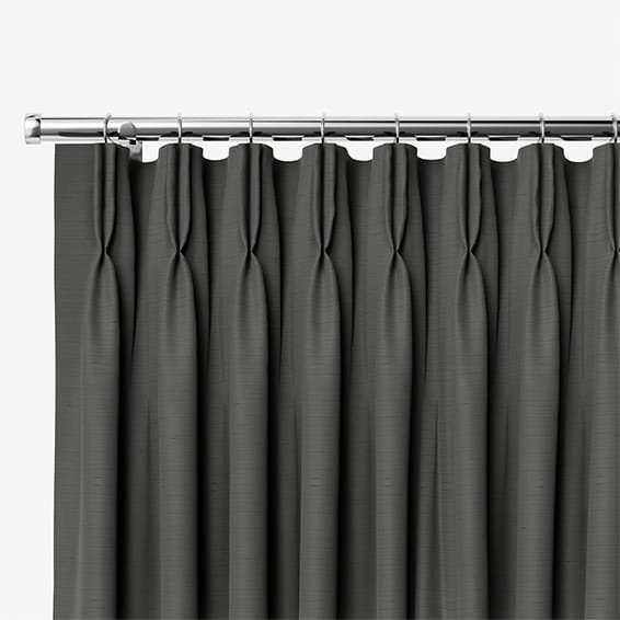 Charcoal Luxe Silk Curtain features a smooth faux-silk texture in a deep charcoal shade that adds richness and depth to any room. With its elegant pleated style and graceful drape, Charcoal Luxe Silk Curtain delivers refined light control and a sophisticated, modern finish.