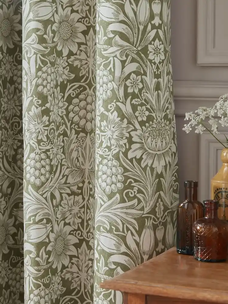 Floral green cotton blackout curtain that helps block sunlight and improve privacy. Soft printed cotton fabric with smooth eyelet hanging creates neat folds. Ideal for bedroom and living room curtains, adding a fresh and elegant look to UAE homes.