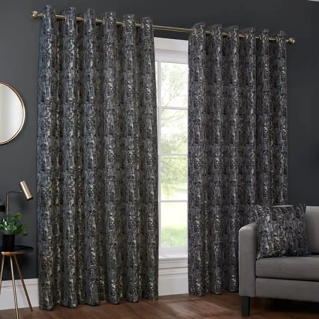 Dark Grey Textured Blackout Curtain