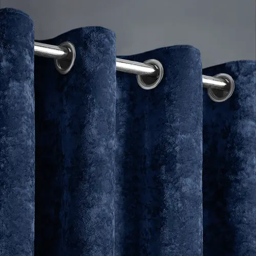 Navy Blue Plain Crushed Velvet Eyelet Curtains