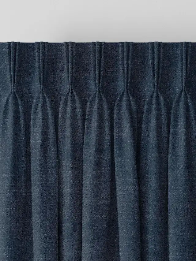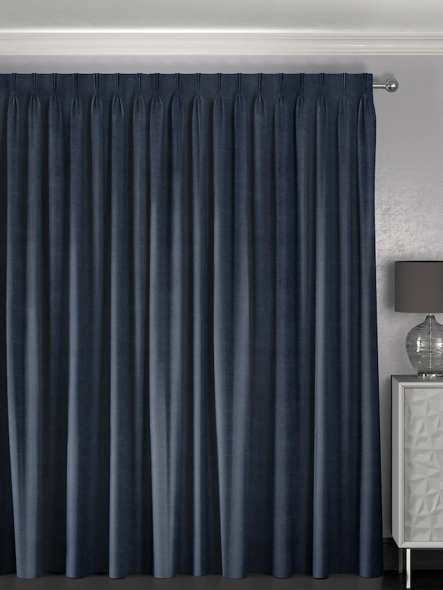 Create a bold and elegant statement with these navy pinch pleat linen curtains designed for a structured and luxurious finish. The rich textured fabric enhances privacy while softly controlling natural light, making them ideal for UAE living rooms and bedrooms. Tailored pleats provide a refined drape that adds depth and sophistication to modern interiors.