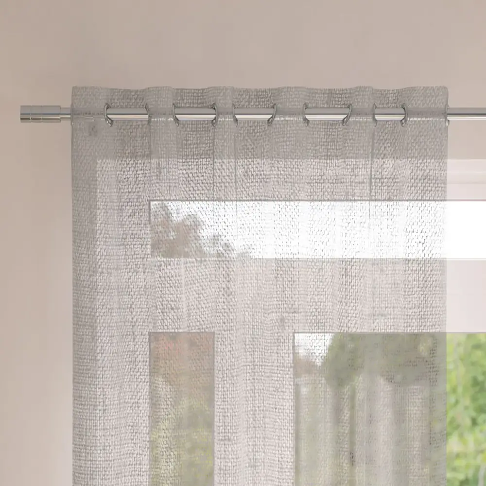 This classic silver voile sheer curtain brings a light, airy elegance while softly diffusing sunlight and offering daytime privacy. Perfect for living rooms and bedrooms, its neutral tone blends easily with modern interiors and pairs beautifully with blackout curtains for a layered window style popular in UAE homes.