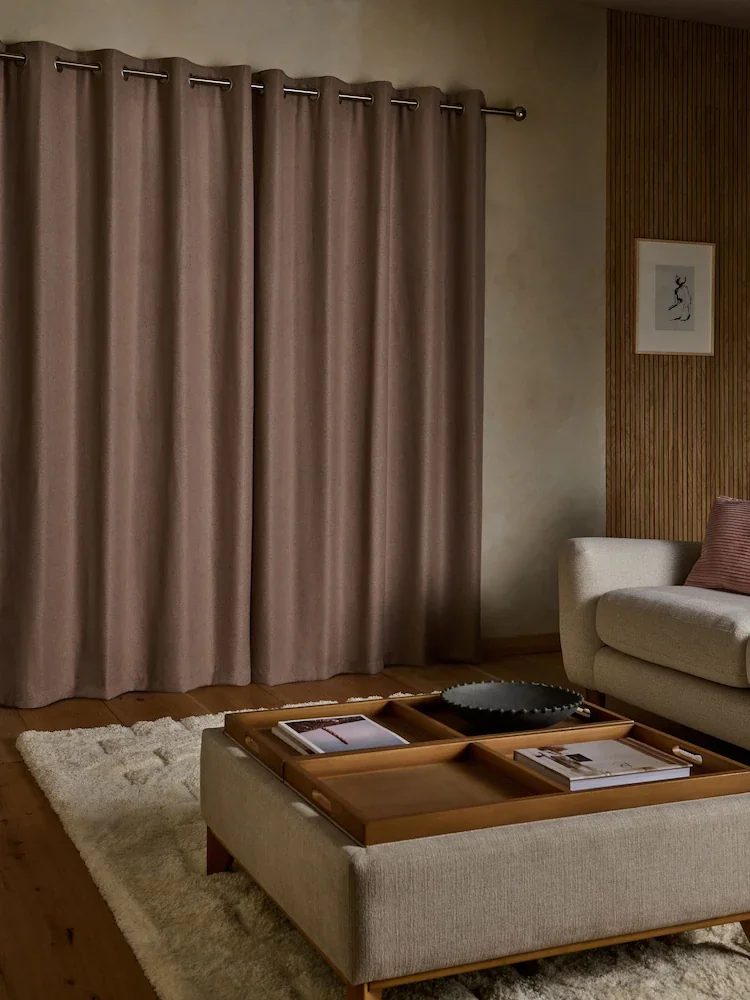 Bring a refined and cozy feel to your space with these taupe eyelet linen window curtains designed to softly filter natural light while maintaining privacy. The smooth textured fabric drapes beautifully, making them perfect for UAE living rooms and bedrooms. Durable eyelets ensure easy sliding with a clean modern finish.
