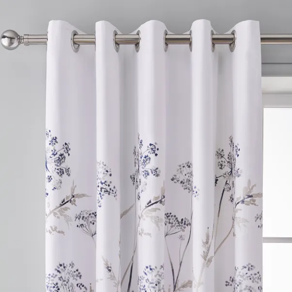 White floral print blackout curtain designed to block sunlight, reduce heat, and enhance privacy. Ideal for living rooms and bedrooms, these curtains feature an elegant botanical pattern on thick blackout fabric with an eyelet ring top for easy hanging and a bright, modern interior look.