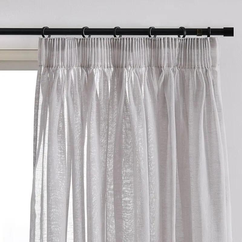 White Sheer Pleated Living Room Curtain